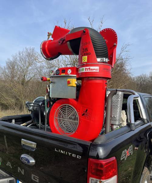 Enfin à la fin de l'été début septembre nous mettons en place le traitement Préventif à Pacy sur Eure(27) microbiologique contre les chenilles processionnaires du Pin, grâce à notre canon de pulvérisation,